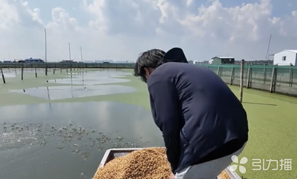 周开朗正在喂饵料。苏报融媒记者 王安琪/摄