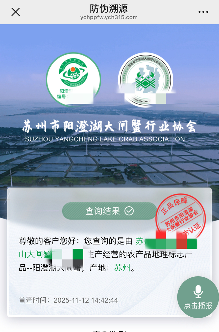 从明确产区与品质标准,到蟹扣的“人脸识别发放”、封箱贴的“AI鉴通溯源”,从线上平台的“严格管控”到消费者的“维权兜底”,苏州市阳澄湖大闸蟹行业协会用技术、流程和责任,搭建起一套精密的防伪溯源系统。下次买蟹时,不妨多看看这枚小小的标识,它藏着整个行业对“正宗”的执着,更藏着让美味不被辜负的初心。