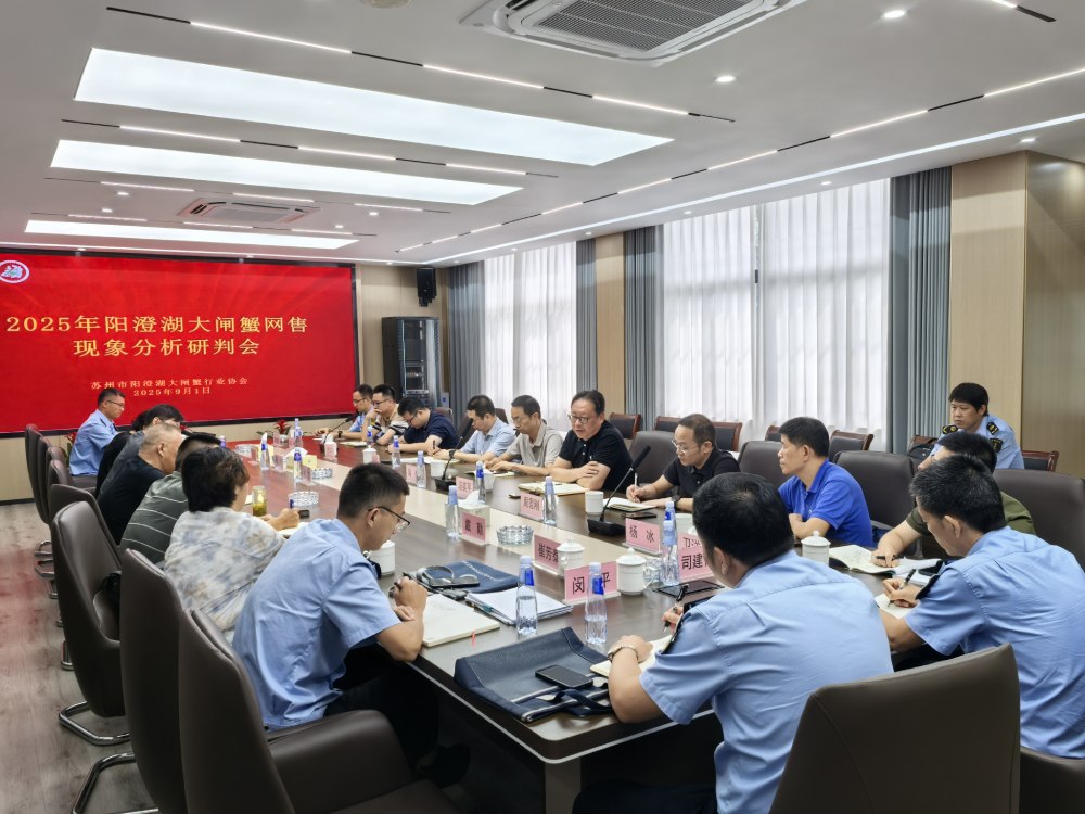 为进一步规范阳澄湖大闸蟹线上销售行为,加强品牌管理,9月1日下午,苏州市阳澄湖大闸蟹行业协会联合苏州市市场监督管理局相关处室、苏州市农业综合行政执法支队、相城区市场监督管理局、昆山市市场监督管理局及线上商家比较集中的相城区四分局、昆山巴城分局相关负责人召开2025年阳澄湖大闸蟹网售现象分析研判会。