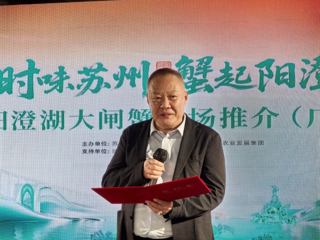 在现场,苏州市阳澄湖大闸蟹行业协会2025年轮值会长龚文龙在致辞中强调,广东市场对高品质美食的开放包容为阳澄湖大闸蟹提供了展示舞台,协会正通过优化养殖技术、健全规章制度、推广专用包装等五大举措、十八项重点任务推动产业升级。